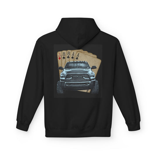 Custom Graphic Fleece Hoodie for Truck Lovers, Perfect for Casual Wear, Gift for Him, Card Game Theme, Everyday Style